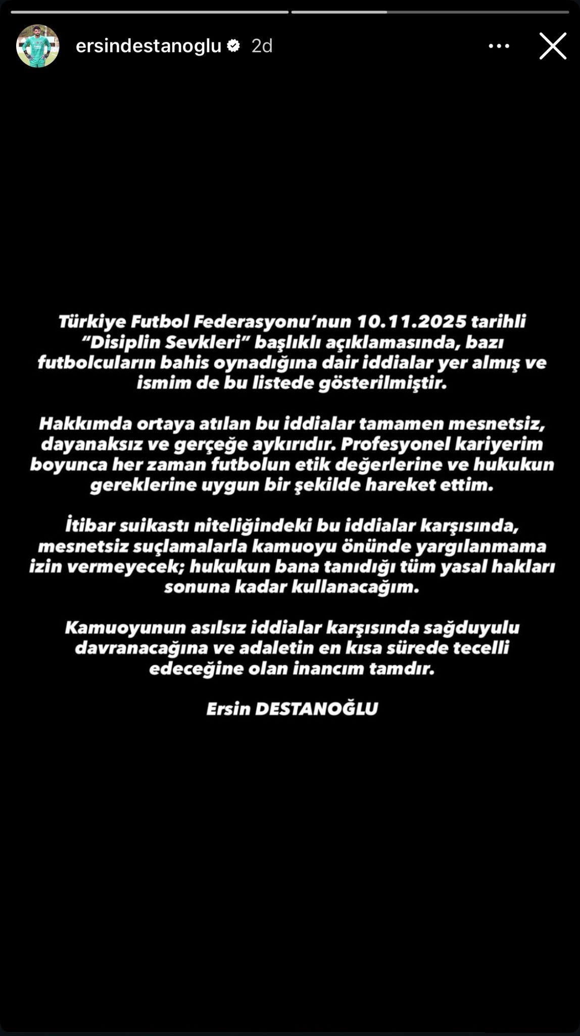 ERSİN DESTANOĞLU'NUN AÇIKLAMASI