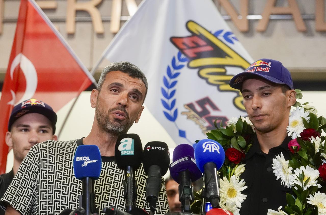 Malaga'dan kalkan tarifeli uçakla İstanbul Havalimanı'na gelen Toprak Razgatlıoğlu'na eski milli motosikletçi ve Türkiye Motosiklet Federasyonu (TMF) Milli Takımlar Kaptanı Kenan Sofuoğlu, Dünya Supersport Şampiyonası'nda genel klasmanda ikinci olan Can Öncü ile milli motosikletçi Deniz Öncü eşlik etti.