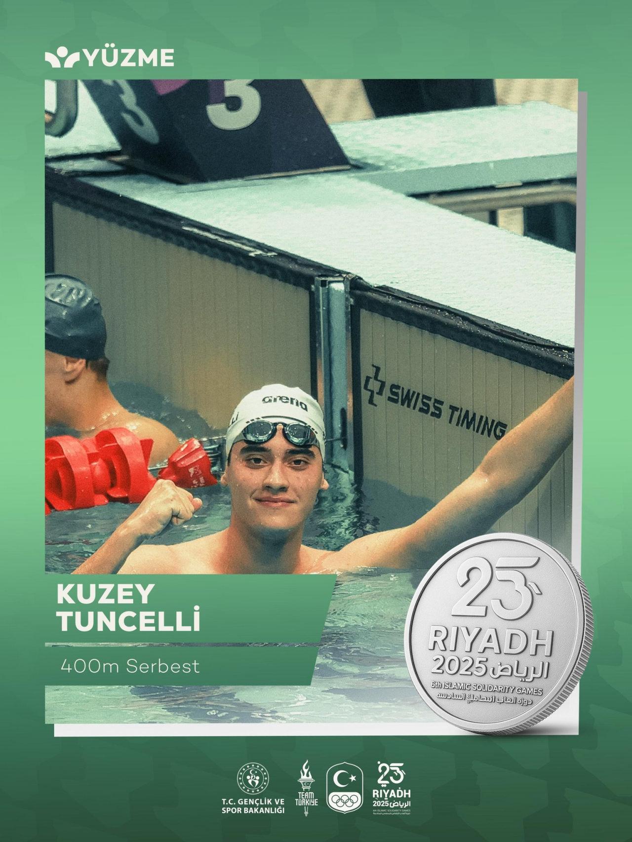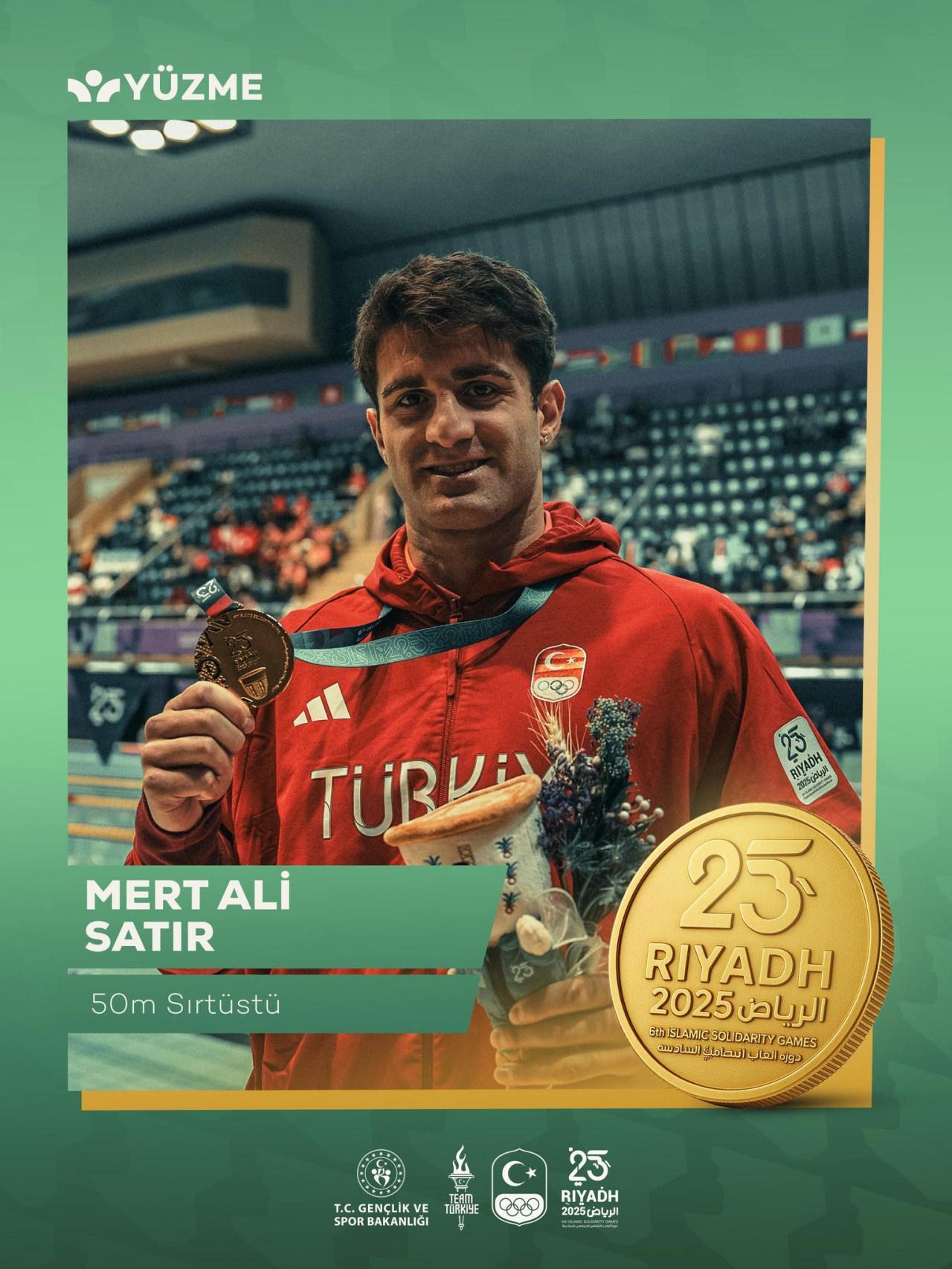 Riyad 2025 İslami Dayanışma Oyunları'nda Demir Özdemir, Hüseyin Emre Sakcı, Arda Akkoyun ve Ahmet Mete Boylu'dan oluşan 4x100m serbest stil erkek bayrak takımı, 3:22.61'lik derecesiyle altın madalya kazandı.