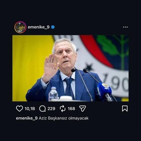 Fenerbahçe'nin eski forvetlerinden Emmanuel Emenike, kulübün efsane başkanı Aziz Yıldırım için sosyal medya hesabı üzerinden bir paylaşım yaptı. Emenike'nin bu paylaşımı, kısa sürede çok sayıda etkileşim aldı.