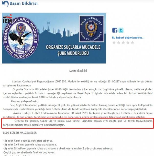 6 TEMMUZ: EMNİYET’TEN ‘19 MAÇTA ŞİKE VAR’ AÇIKLAMASI: İstanbul Emniyet Müdürlüğü bir açıklama yaptı ve Spor Toto Süper Lig ile Bank Asya 1. Lig’den tam 19 maçta şike ve teşvik faaliyetlerinin tespit edildiği bildirildi. Sabaha karşı tutuklama istemiyle mahkemeye sevk edilen 20 kişiden aralarında Şekip Mosturoğlu'nun da bulunduğu 15 kişi tutuklandı. 5 kişi ise serbest bırakıldı.