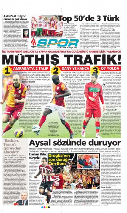 Gazetelerin spor manşetleri (29 Mayıs 2013)
