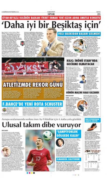 Gazetelerin spor manşetleri (02 Haziran2013)