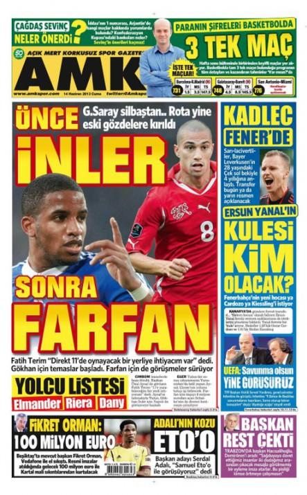 Gazetelerin spor manşetleri (14 Haziran2013)