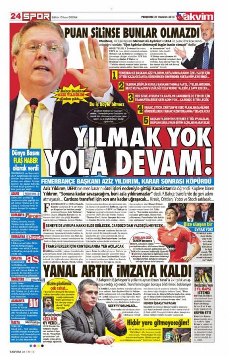 Gazetelerin spor manşetleri (27 Haziran 2013)