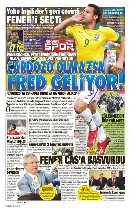 Gazetelerin spor manşetleri (03 Temmuz 2013)