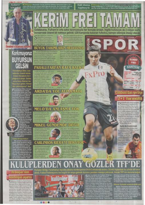 Gazetelerin spor manşetleri (03 Temmuz 2013)