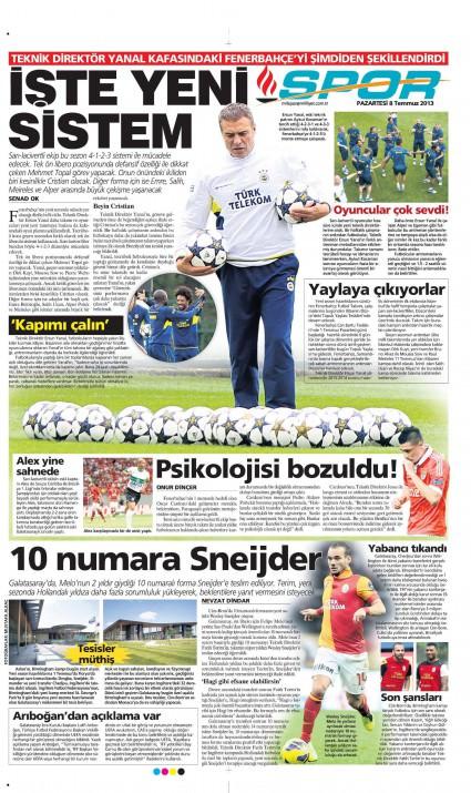 Gazetelerin spor manşetleri (08 Temmuz 2013)
