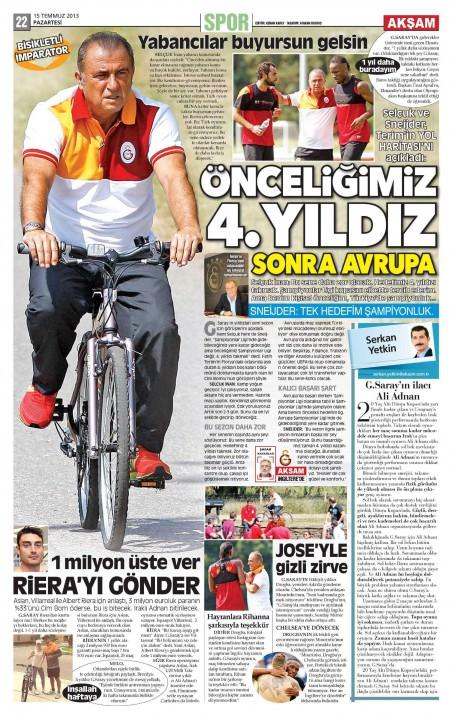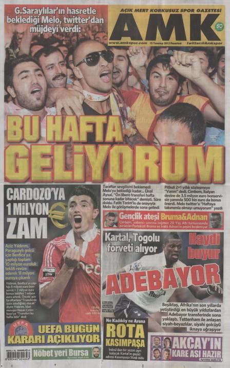 Gazetelerin spor manşetleri (15 Temmuz 2013)