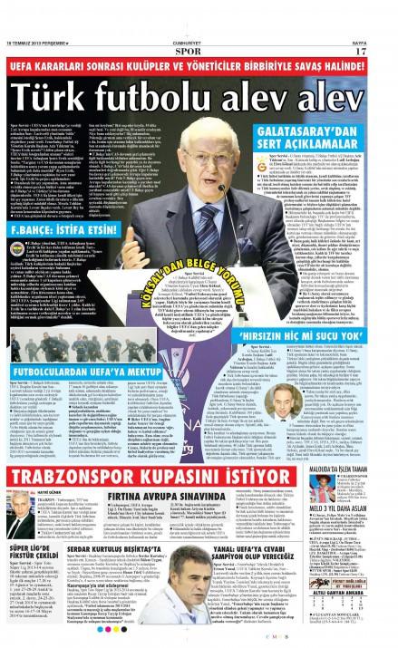Gazetelerin spor manşetleri (18 Temmuz 2013)