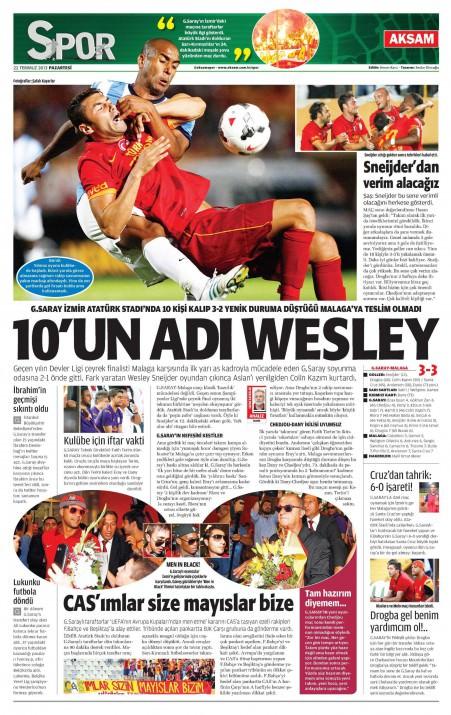 Gazetelerin spor manşetleri (22 Temmuz 2013)