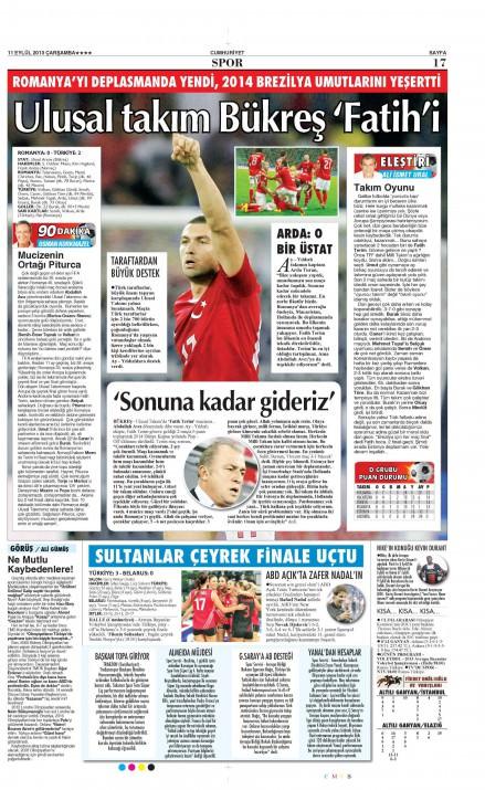 Basında Romanya-Türkiye manşetleri!
