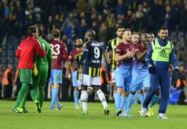 Derbide futbolcular birbirine girdi