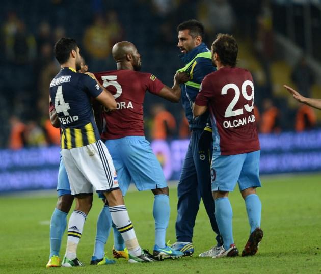 Derbide futbolcular birbirine girdi