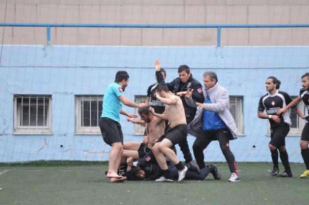 Futbolcular bu kez tepkilerini polise yönlendirdi.