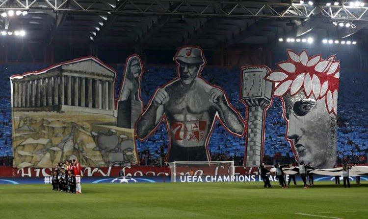 Olympiakos tribünleri, D. Zgreb maçı öncesinde bu gösteriye imza attı.