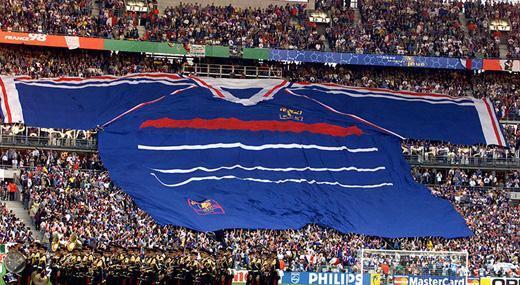 1998 Dünya Kupası'nda ev sahibi Fransız taraftarlar, dev bir formayla tribüleri süslüyor.