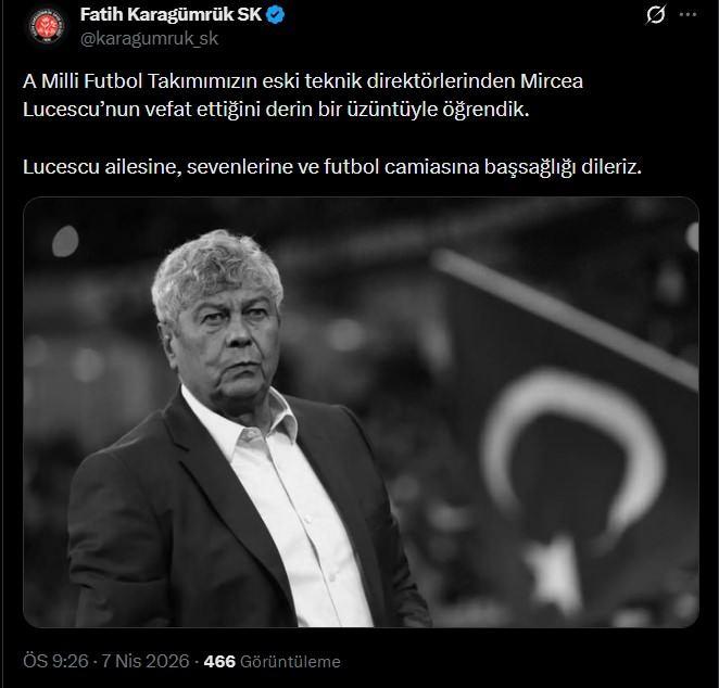 Spor camiasından Lucescu için taziye mesajları