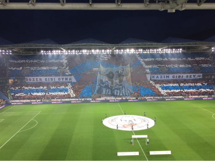 Trabzonspor sahasında Beşiktaş'ı konuk ettiği maçta görsel bir şölene imza atarak "Dozer gibi oyna Kazım gibi sev" koreografisi yaptı.