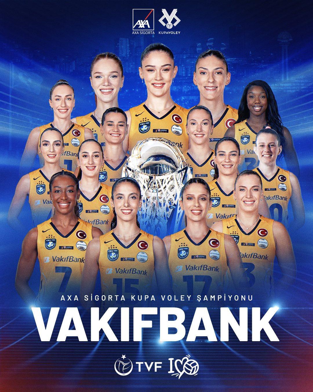 “Ankara Spor Salonu’nda oynanan 2026 Kadınlar AXA Sigorta Kupa Voley Finali’nde Eczacıbaşı Dynavit’i mağlup ederek kupayı kazanan VakıfBank Kadın Voleybol Takımını kutluyorum. Finalde mücadele eden Eczacıbaşı Dynavit Kadın Voleybol Takımını da tebrik ediyorum. Her iki takımımıza göstermiş oldukları performans için teşekkür ediyor, başarılar diliyorum.”